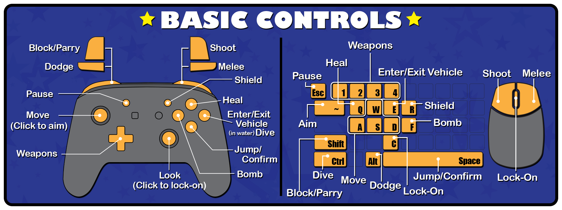 - You can pause the game and display the controls layout by pressing [Esc] or your controller's SELECT/OPTIONS button.